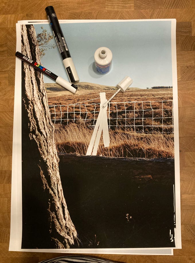 Corrective Measures combines extracts from my photographic archives of 135mm colour negatives with correction fluid, which is typically used to erase cover and correct mistypes and mistakes in pieces of writing.